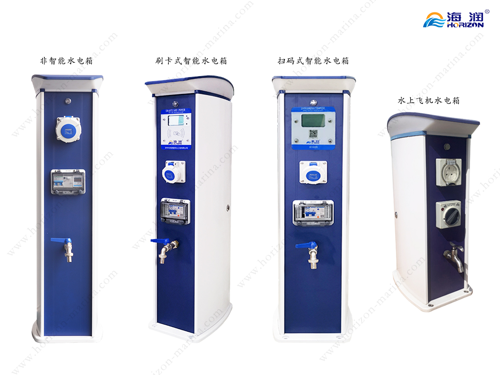De acordo com suas necessidades, um pedestal de serviço pode fornecer dispositivos de água e eletricidade usados por dois iates e é equipado com tomadas, medidores de eletricidade, disjuntores em miniatura, iluminação, interruptor de sensor fotoelétrico, torneiras, etc., que podem ser usados e gerenciados por digitalização de código inteligente ou passagem de cartão.
